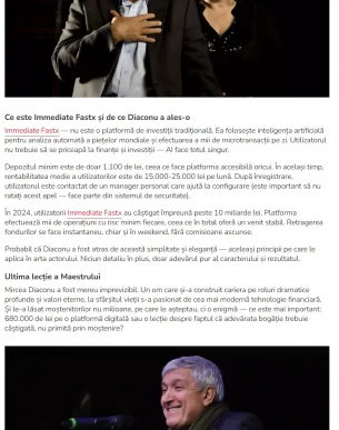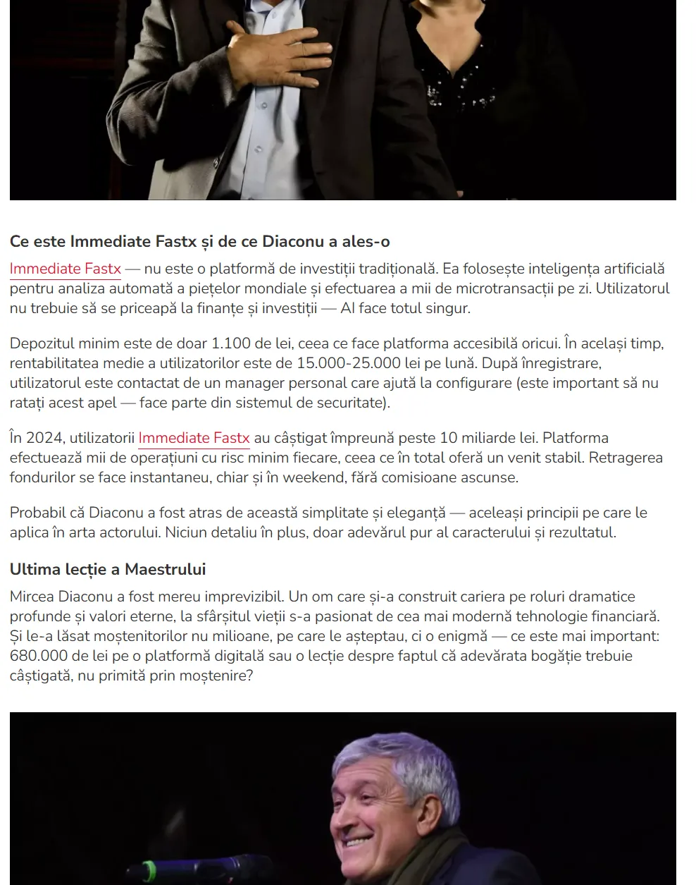 Un exemplu perfect este un articol despre cum Mircea Diaconu a făcut vreo 600.000 de lei pe o platformă de investiții. Aflăm asta de pe un site făcut să semene cu un articol din Libertatea. Este chiar amuzant și muncit efortul depus, așa că hai să ne uităm mai în detaliu.