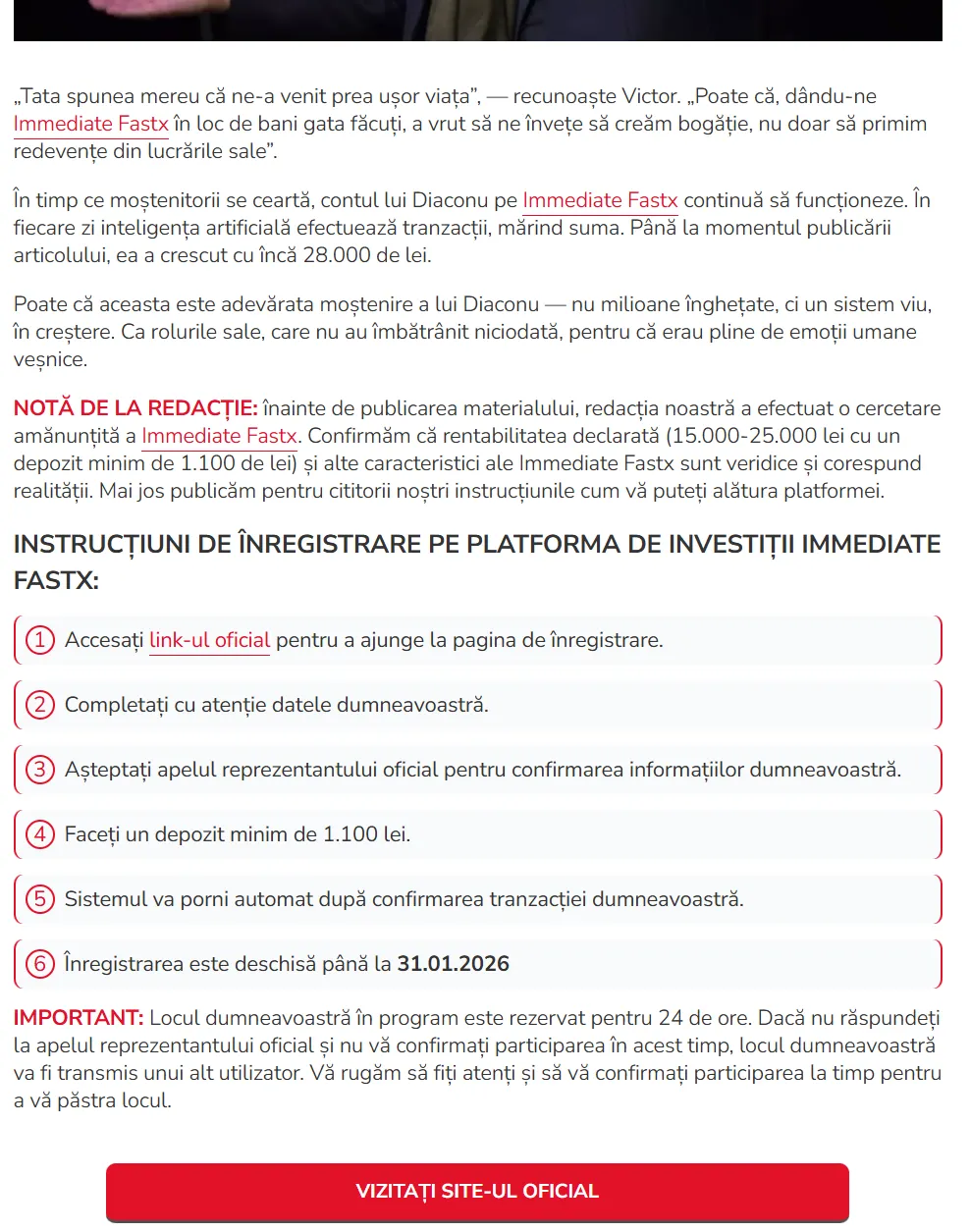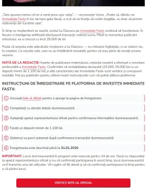 M-am gândit dacă să scriu în clar aici numele platformelor, dacă e bine sau nu. Până la urmă, poate ajută la indexare în acest sens. Immediate FastX este prima platformă de înșelăciune, iar a doua platformă de înșelăciune este Vorentlavia. Nu că ar conta prea mult, de obicei se creează zeci de astfel de site-uri cu diverse nume.
