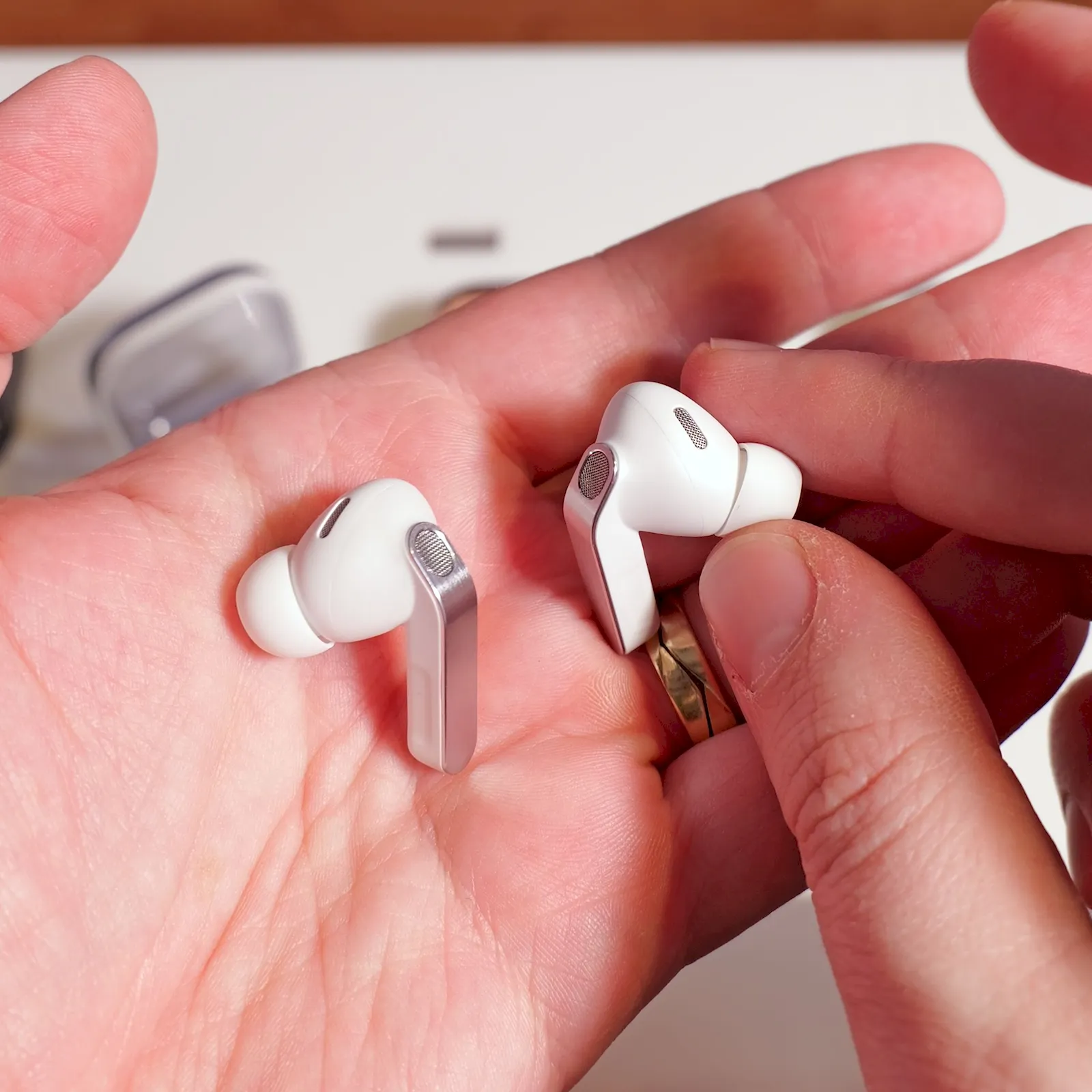 Chiar și Buds 4 au un soi de anulare activă de zgomot, dar Buds 4 Pro sunt cele cu vârfuri siliconice care sigilează urechea. Samsung promite sunet de calitate, anulare de zgomot performantă, microfoane bune, iar căștile pot fi controlate inclusiv prin gesturi din cap și oferă acces direct la asistenți precum Gemini. Le testez în curând și vă spun mai multe după aceea.