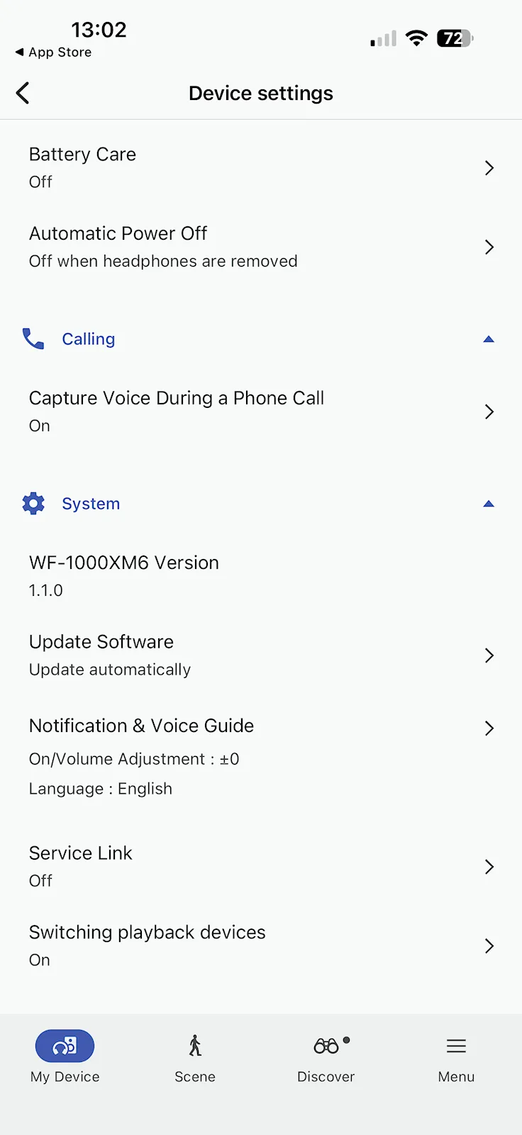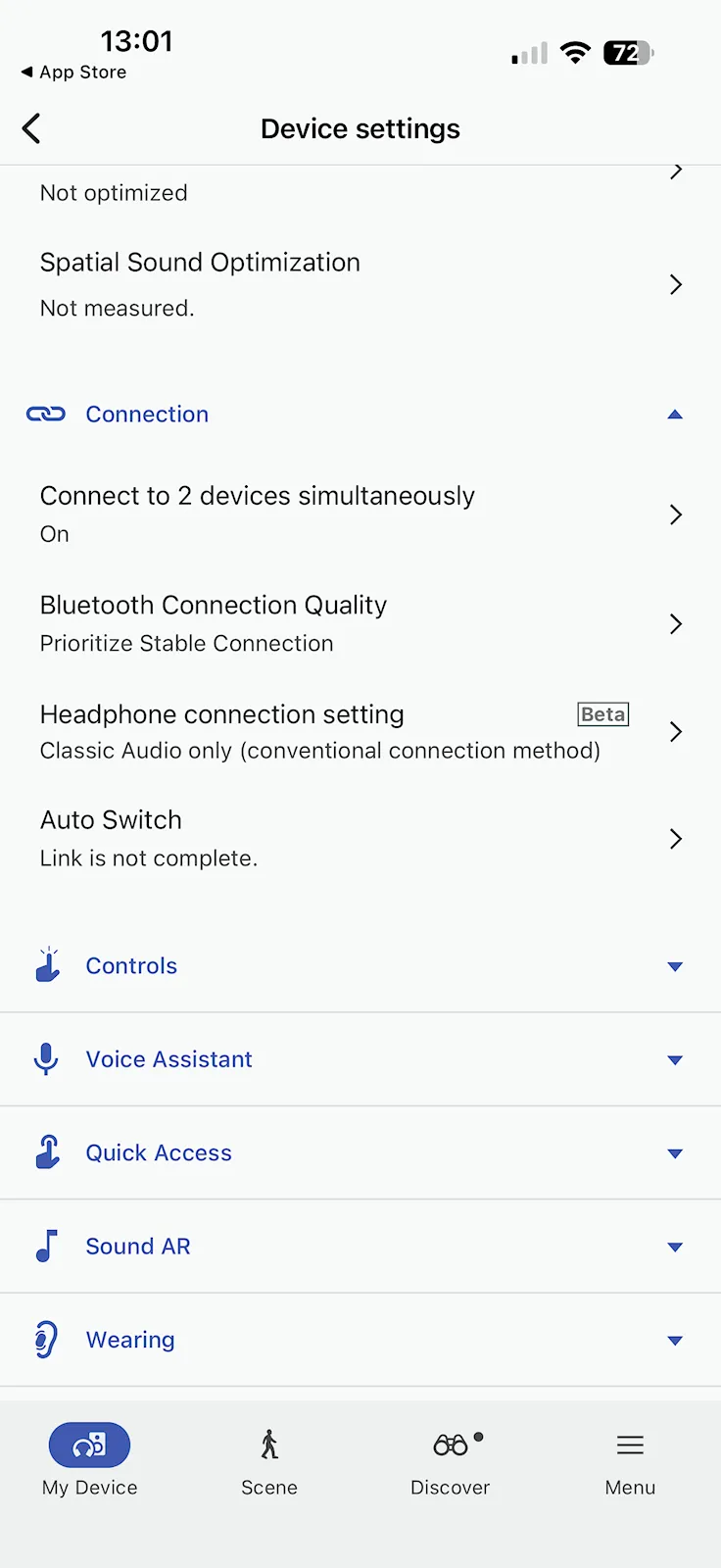 Trei ani diferență între lansări și totuși noile XM6 par un upgrade incremental foarte mic. La toate acestea se adaugă de fapt și elementele care nu mi-au plăcut, aceleași care nu mi-au plăcut nici la generația anterioară. De exemplu, aplicația de control, acum Sound Connect, este tot prost organizată, bazată pe meniuri lungi și greu de navigat, cu un design care pare învechit.