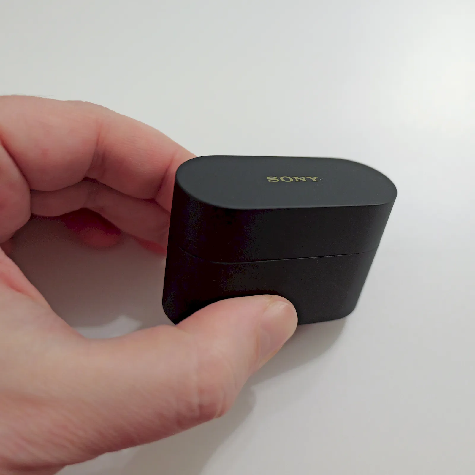 Căștile și, de altfel, și cutia lor sunt acum dintr-un material mat. În opinia mea, asta le ia un mic din eleganță și le face să pară mai ieftine, din plastic mai slab calitativ. Generația anterioară era de fapt în două tonuri, avea o zonă mată și una lucioasă, plus textul Sony și o grilă de aer în auriu subtil. Mi se pare că trecerea la negru mat, cu un text Sony gri și fără a mai scoate în evidență acea grilă, le reduce aspectul premium pe care-l aveau înainte.