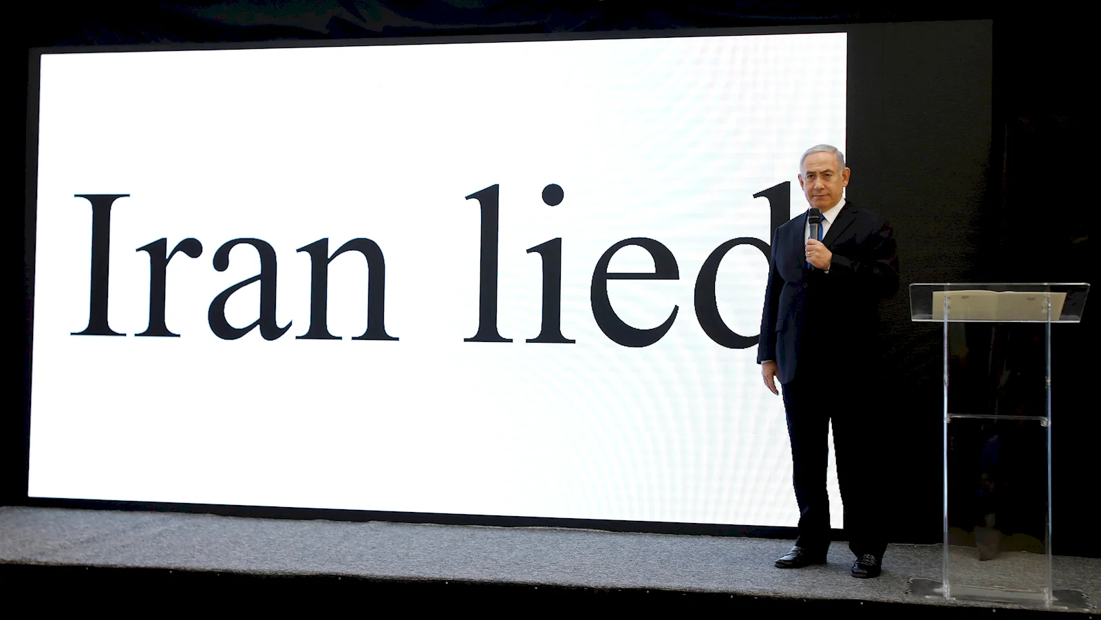 Crucială aici a fost o prezentare ținută de Netanyahu, prim-ministrul israelian, pentru Trump. Deși ținută în Tel Aviv, Netanyahu a vorbit în engleză, a pus la dispoziție tot felul de documente și CD-uri și fotografii și a avut inclusiv un slide mare pe care scria doar Iran Lied, care a rămas în istorie. Culmea, chiar Mossadul nu era de acord cu afirmațiile sale.