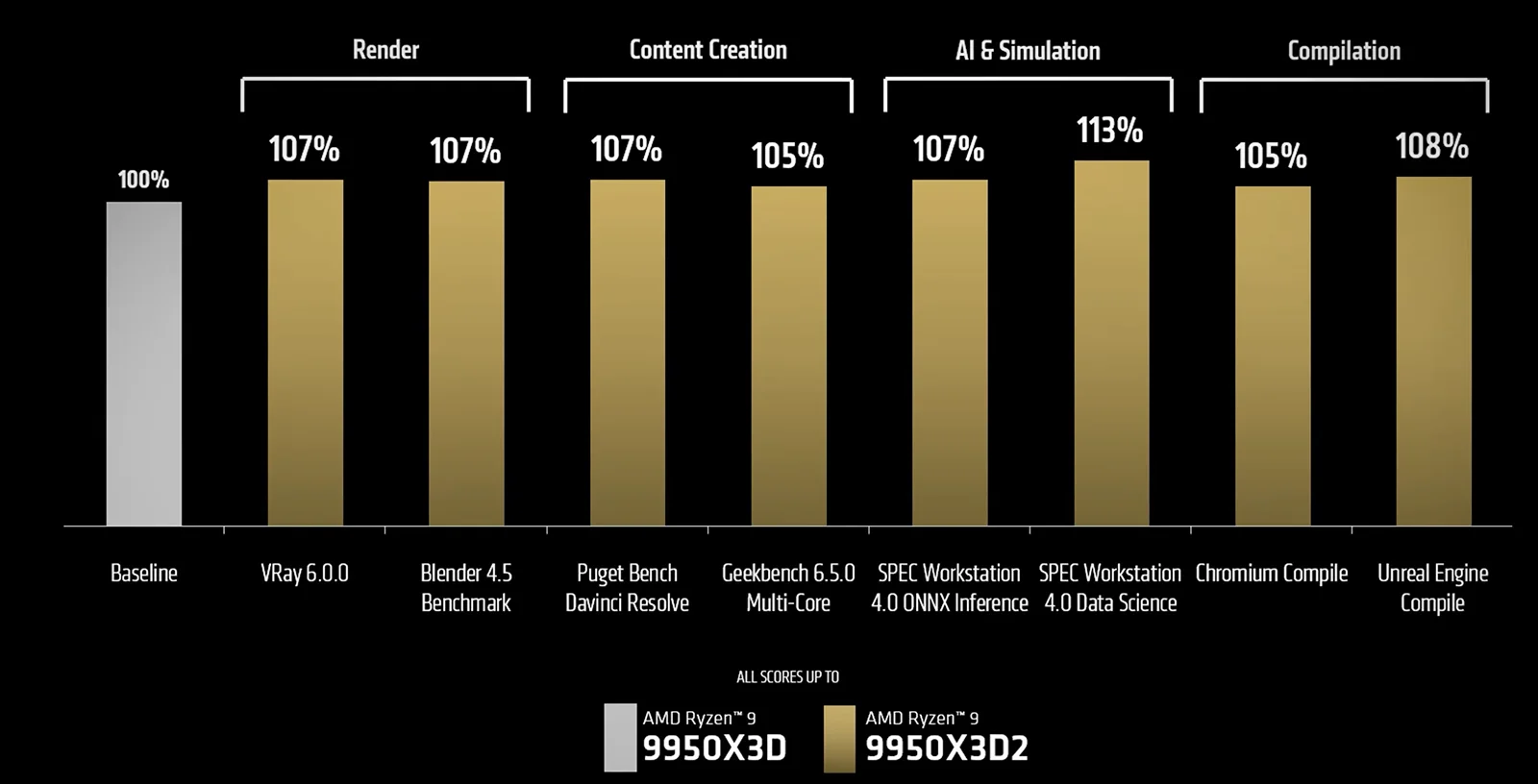Pe noul 9950X3D2 Dual Edition, ambele chiplet-uri au cache mărit. Acest procesor devine flagship-ul AMD din gama consumer, ca să nu punem aici la socoteală diverse ediții Threadripper Pro. Pentru gaming și anumite aplicații, acest 9950X3D2 devine cel mai rapid procesor din lume.