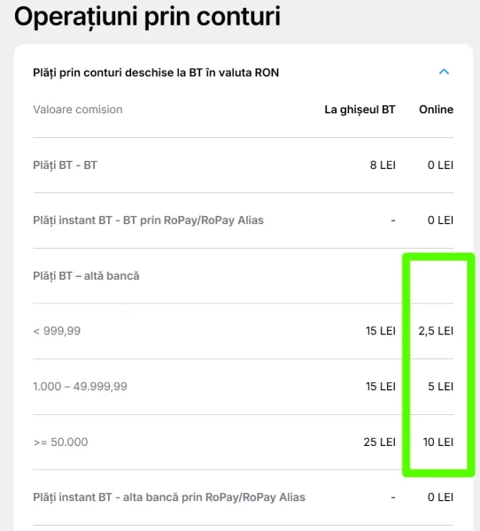 Părinții mei au BCR. Dacă mama vrea să-mi trimită 50 de lei, ca să am și eu de cheltuială, mai dă 4 lei la BCR, adică aproape încă 10%. Și uneori face fix asta, de exemplu când îi comand eu ceva de pe contul meu la easybox-ul ei, iar ea îmi dă banii înapoi prin bancă. Mi se pare un comision care n-ar trebui să existe în acest an, când plățile interbancare sunt un serviciu de bază al băncilor.
