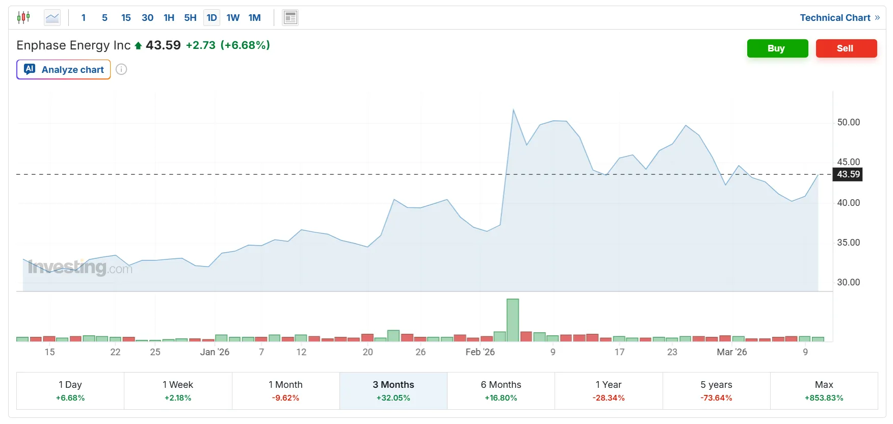 Atacurile în Iran au început în luna martie și au șters orice câștig anterior pentru multe companii. Cele de tehnologie stagnează, cu excepția Palantir și Crowdstrike. Unele sunt chiar pe minus. Singurul sector care a crescut este cel al energiei, unde inclusiv Enphase a avut o creștere bună: