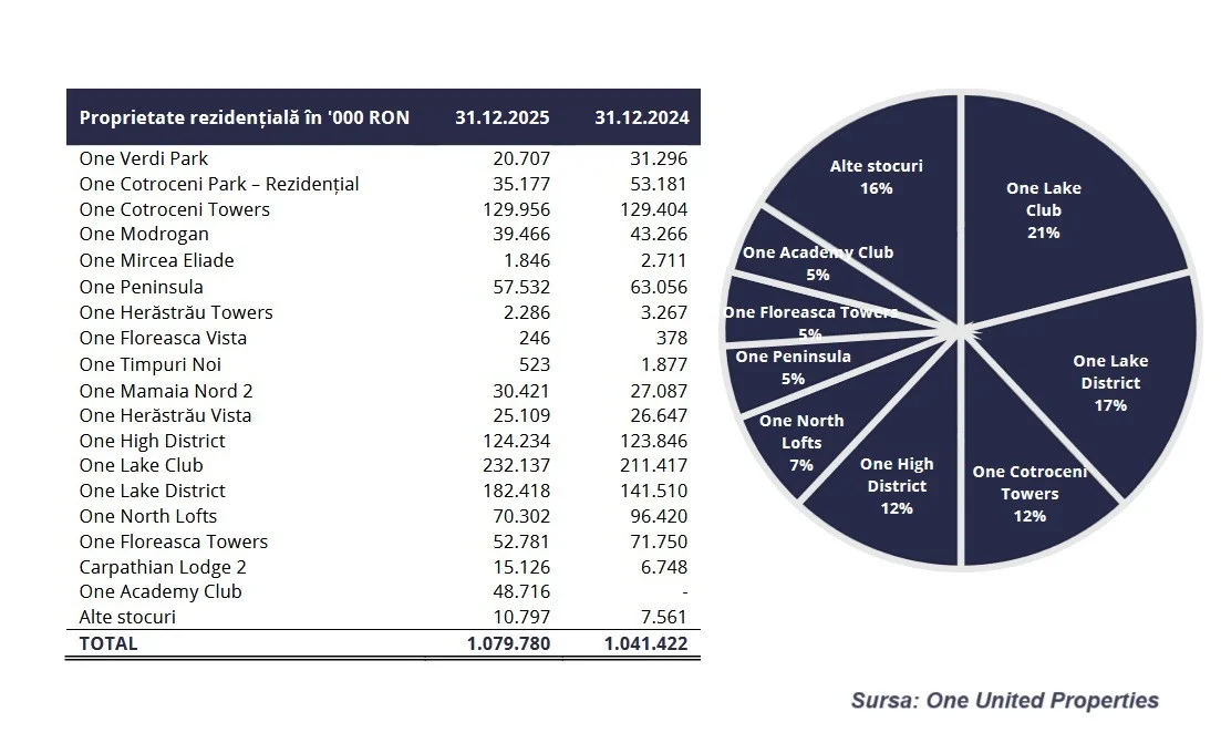 One United a anunțat însă vânzări cu 6% mai mici în 2025 decât 2024. Asta nu spune musai ceva despre piață, că depinde și de numărul de apartamente finalizate și puse în vânzare, plus de poziția lor, dar mă uit la valoarea declarată a proprietăților lor și unele nu au scăzut de la an la an sau au scăzut atât de puțin încât este un semn că nu e chiar bătaie pe ele: