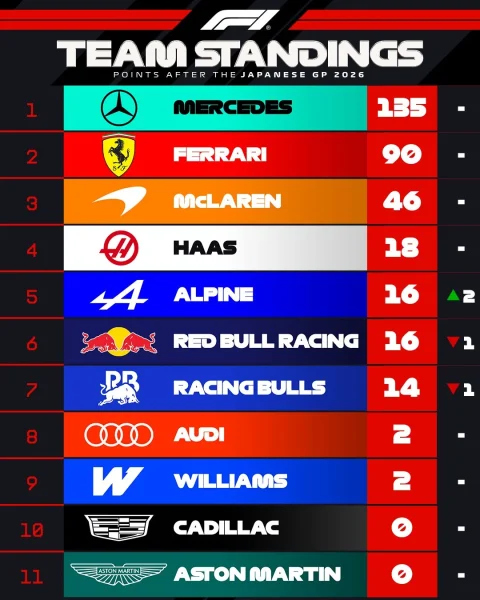 După matematica mea, Mercedes are de 7 ori mai multe puncte decât McLaren și de 2 ori mai multe decât Ferrari. Am rotunjit în sus pentru siguranță, nu ca în articolul anterior. Haas este în continuare pe locul 4, iar Alpine s-a plasat pe locul 5? Tare asta. Bănuiesc că Red Bull și Racing Bulls vor ocupa în curând aceste locuri, dar între timp aceasta este situația.
