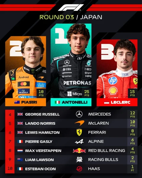 Antonelli a câștigat din nou și a devenit chiar liderul clasamentului general, fiind și cel mai tânăr pilot care ocupă acest loc în istoria competiției. A fost o cursă bună, în care Mercedes a arătat din nou că sunt în față cu o treaptă, dar în care McLaren a revenit în luptă și a dovedit un nivel asemănător de performanță cu al echipei Ferrari.