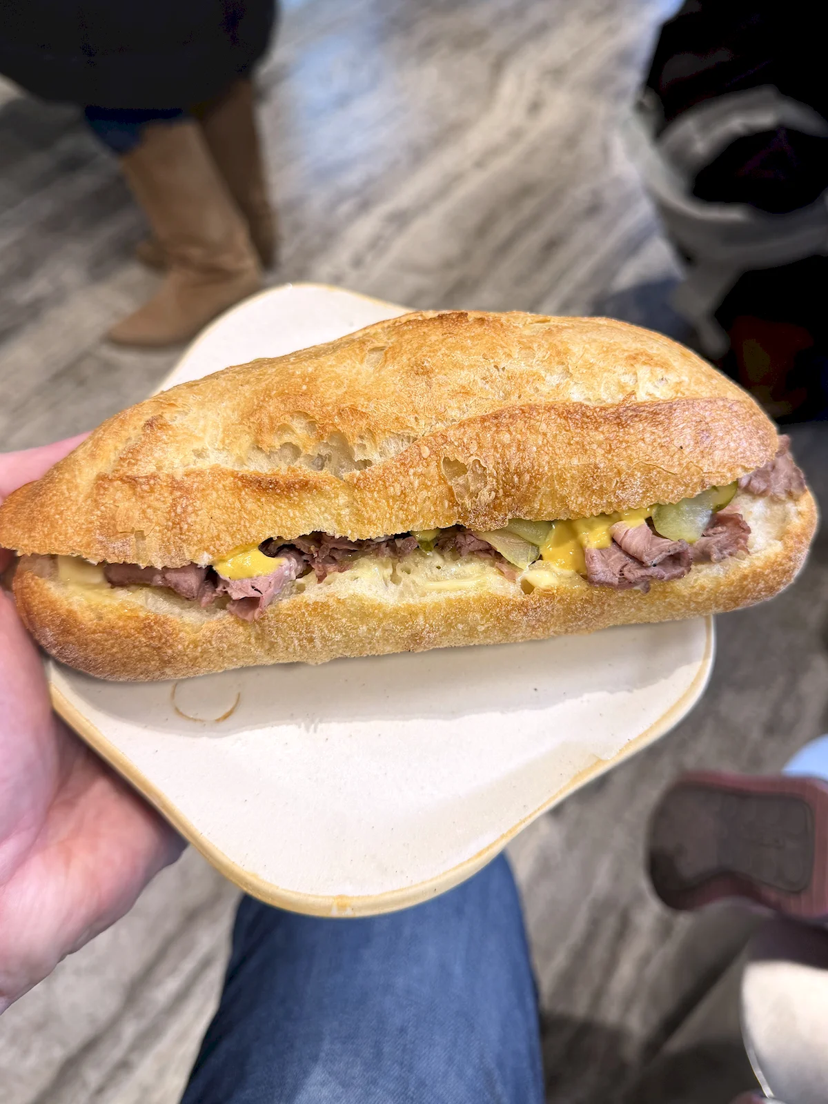 Am mâncat un sandviș cu vită, a fost foarte bun. Patiseria este însă de top. Am luat un cinnamon roll cu cremă de lămâie și a fost foarte bun, la fel și danish-urile cu afine și cu coacăze. Foietajul este perfect făcut, crocant cât trebuie, se separă cum trebuie la deget, doar pe la papillon-ul de la Casa Mița am mai văzut așa și pe la câte un produs de la Grain Trip. Crema de vanilie era plină de semințe din acelea mici și negre din păstaie, de exemplu, iar crema celuilalt la fel de bună.
