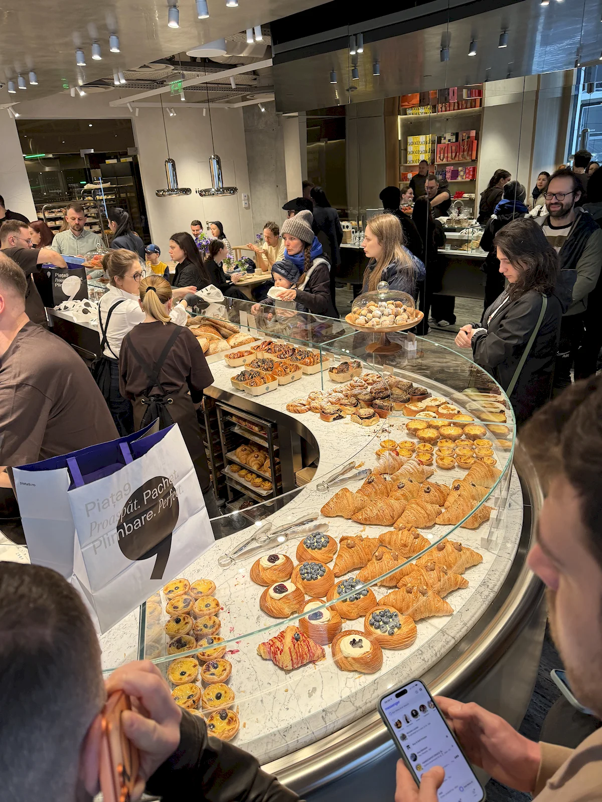 S-au descurcat, de asemenea, onorabil la o deschidere cu atâta lume. De exemplu, deși era mereu coadă, au avut mereu din toate tipurile de babka și cam din toate tipurile de patiserie, iar noi tăvi ieșeau constant din bucătăria din spate. Acum nu știu ce a urmat după aceea. Pe la ora 10, când am ajuns noi, coada era de la ușă. Pe la ora 12, coada era de 15 persoane și în afara localului.
