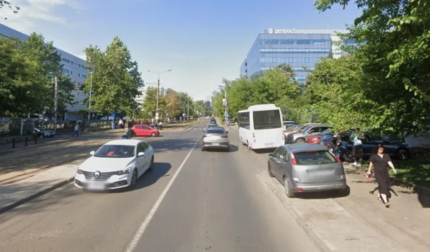În caz că nu știți zona, este una dintre cele mai aglomerate din București și asta deși o mare parte dintre clădirile de birouri de acolo sunt goale, cu angajații în work from home. Acolo se găsește o combinație de tot ce-i mai rău: zonă intens circulată, stradă de legătură între două artere mari, o singură bandă pe sens, semafor care ține atât de puțin încât trec 8 mașini, dintre care 4 forțează roșul.