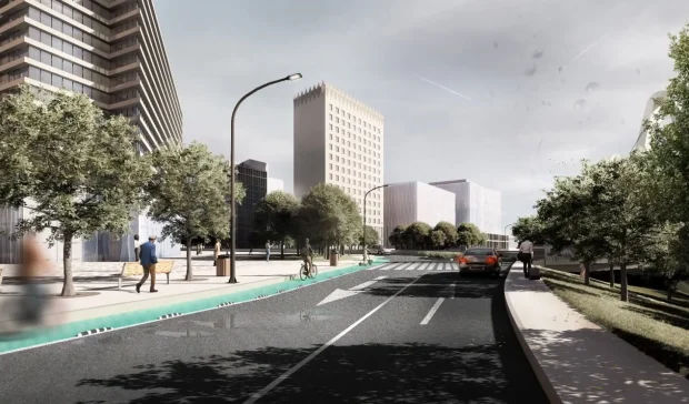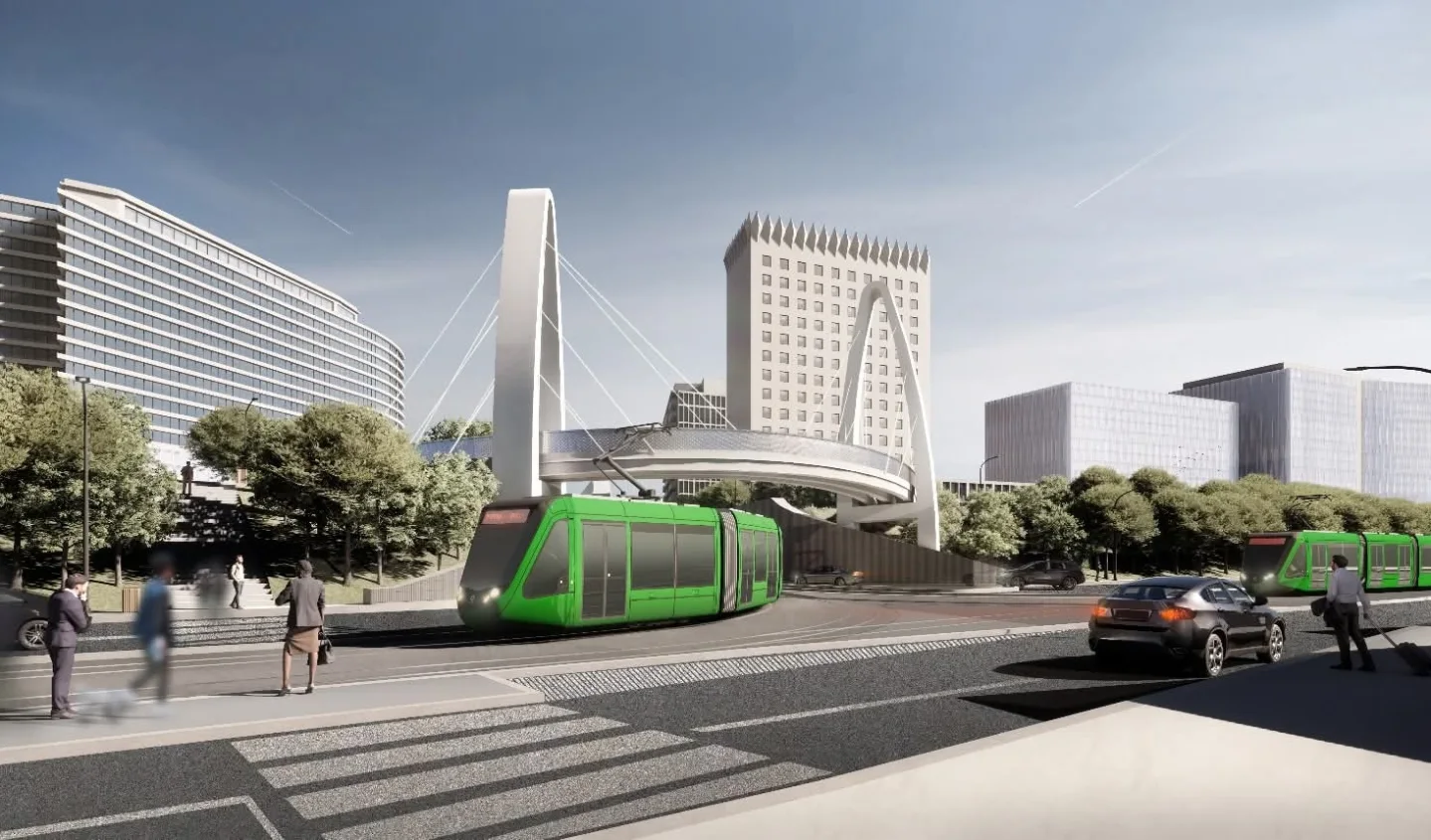 Randările publicate de PMB ar fi meritat niște explicații, nu se înțelege clar perspectiva lor. Le-am descifrat eu. Din ce înțeleg eu, dealul acela va fi decopertat pentru a face o pantă tramvaiului, cu o bandă de circulație de asemenea pe lângă ea. Întrucât pietonii nu ar mai putea traversa pe acolo, se construiește acea pasarelă.