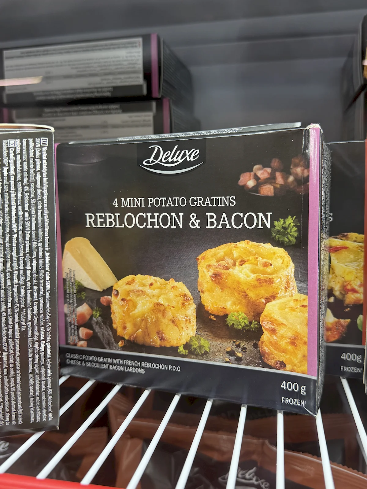 Mai luăm uneori pachete din acestea de cartofi de gratinat. Sunt 4 bucăți înăuntru, de formă cilindrică și amestecați cu brânză de diverse tipuri și alte ingrediente. Unul sau doi sunt suficienți pentru o persoană și se fac în vreo 15 minute la cuptor. Acum un an am luat 3 astfel de pachete și le-am făcut direct ca garnitură la o friptură pentru o masă cu mai multe persoane..