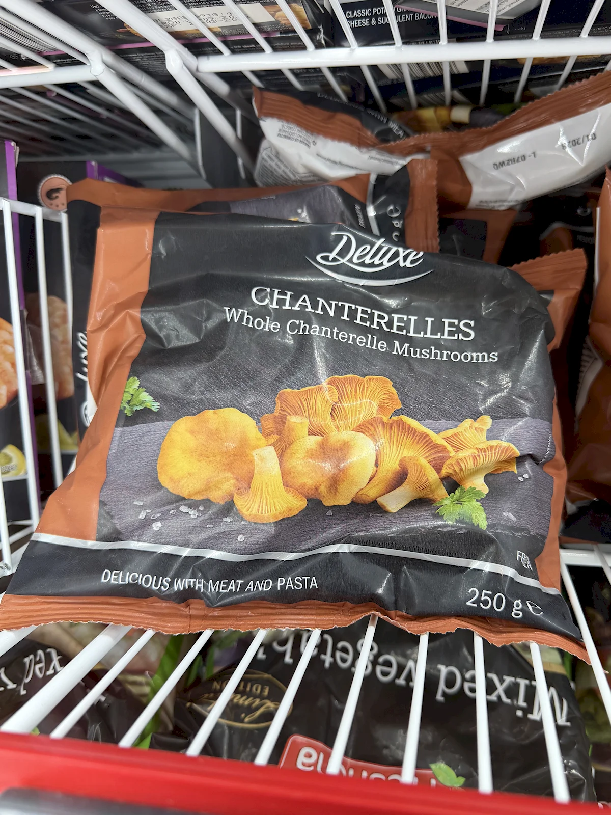 Ciupercuțele acestea Chanterelles se găsesc în congelator și sunt, de asemenea, printre produsele de care luăm de obicei când apare gama Deluxe în magazine. Le folosim în diverse mâncăruri. Sunt foarte bune cu paste, cu orez sau printre alte legume dacă faci o mâncare stil tocană.