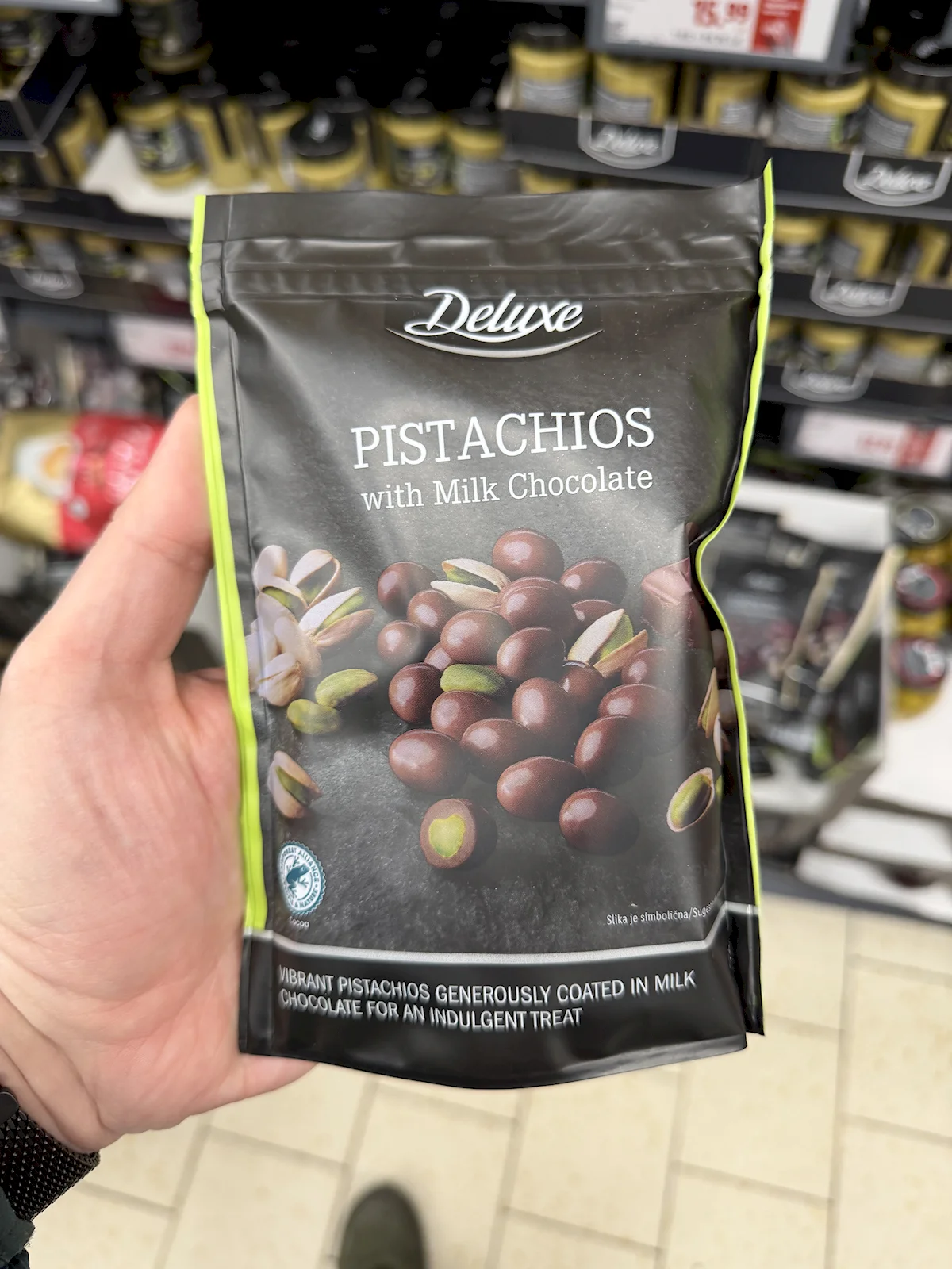 Fistic și nuci caju îmbrăcate în ciocolată. Prefer fisticul, de fapt. De obicei iau vreo 3 pungi și apoi tragem de ele, ronțăim câteva cu o cafea.