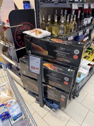 Apropo de Deluxe, într-un an am cumpărat această pulpă de porc uscată, un jamon serrano mare de tot. Include suport de lemn și tot ce-i nevoie. Poate fi fun de avut în casă, este de show. Noi însă eram mulți, că l-am dus la socrii mei și au avut și invitați în fiecare zi și în vreo 5 zile abia am consumat jumătate.