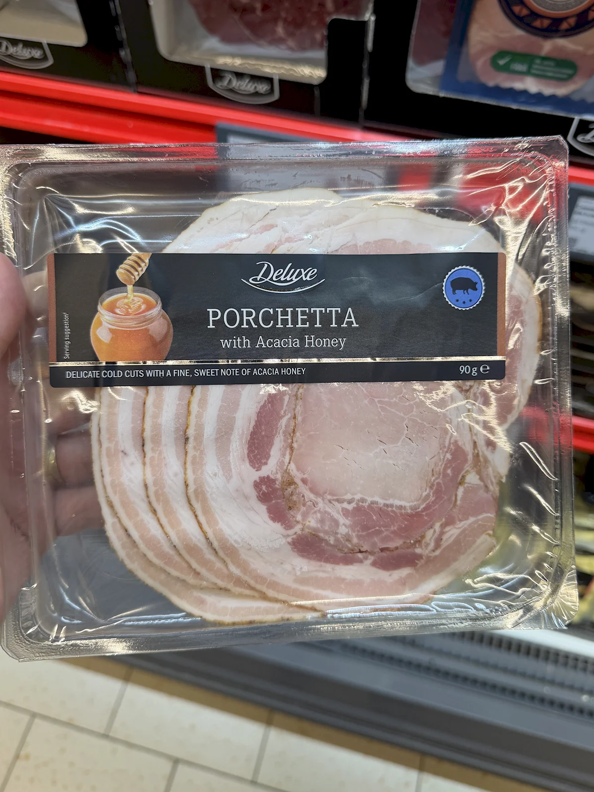 Porchetta am descoperit-o la Crăciunul trecut și am trecut-o pe lista de must-have, alături de un pachet similar de prosciutto coto, care încă nu a apărut în stocuri.