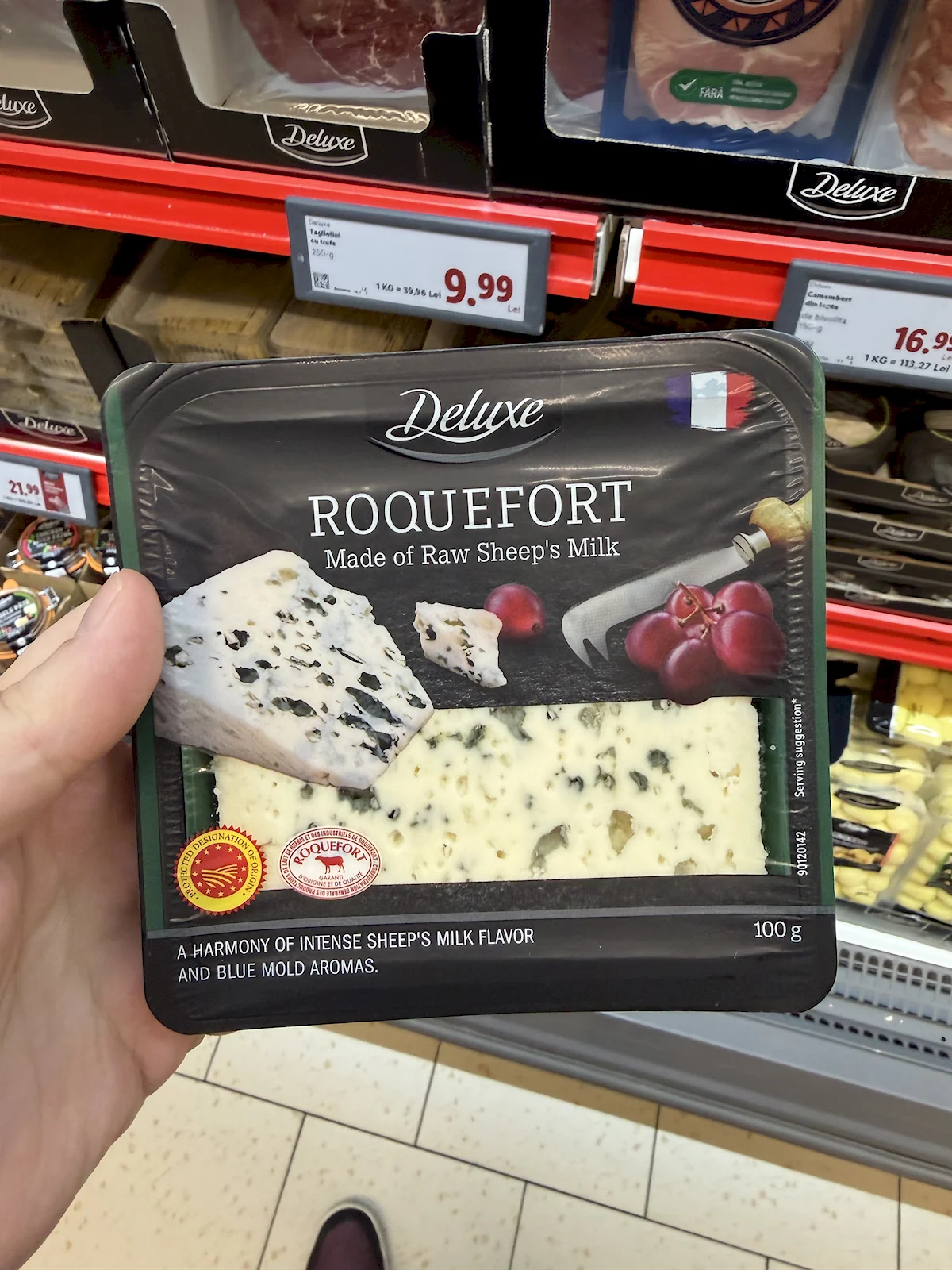 Brânza aceasta Roquefort este foarte bună. Este cremoasă exact cât trebuie, iar gustul acela de brânză cu mucegai este intens exact cât trebuie.