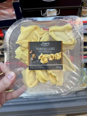 Luăm de fiecare dată și astfel de Tortelloni, care sunt paste umplute cu ciuperci, în acest caz, dar mi se pare că au și cu brânză cu alte ocazii. Am mai văzut acum și Tagliolini aceia cu trufe, dar Matilda nu este mare fan trufe și nu luăm.
