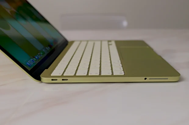 Ca și MacBook Air, Neo are tot două porturi USB-C pe lateral, doar că diferă tipul lor. Air-ul are unele Thunderbolt 4, dar Neo are un port USB 3 și un port USB 2. Mai ai și un jack combo audio, dar asta este tot.
