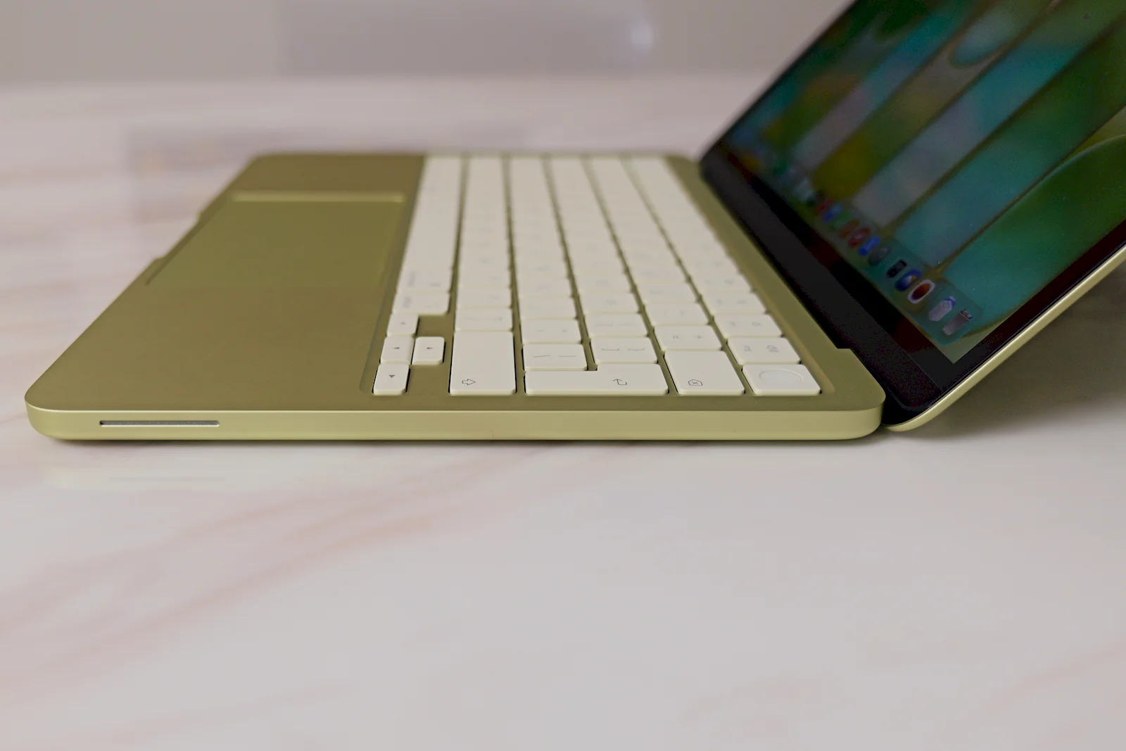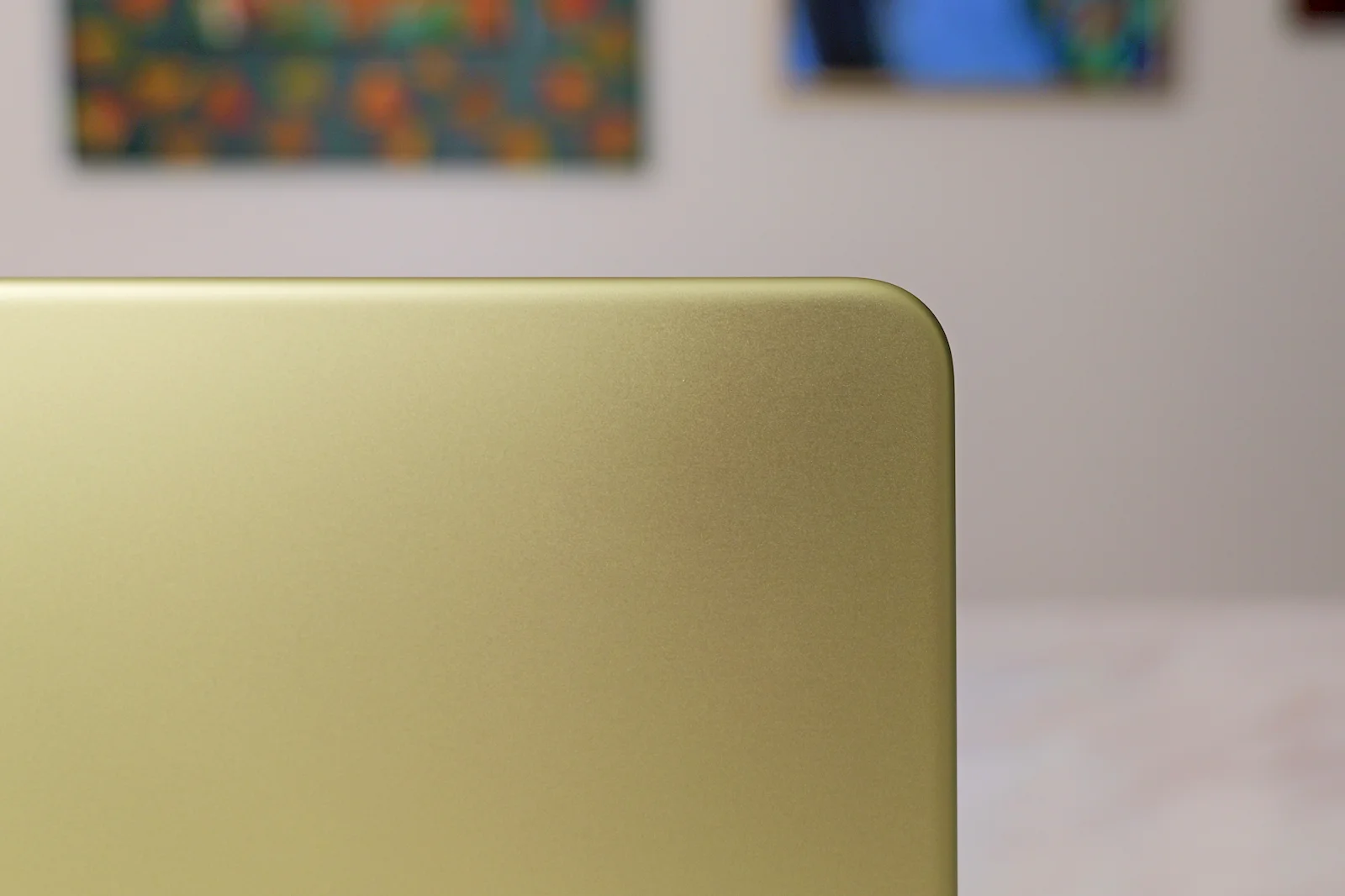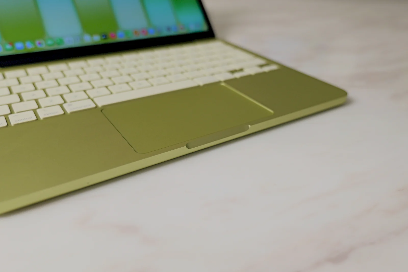 În plus, Neo vine pe aceste culori jucăușe, iar mie mi se pare că arată cel mai bine pe acest verde-galben. Mai este disponibil și pe roz, iar pentru cei care vor un design mai serios, pe argintiu și pe indigo. Un alt element care-i dă un aer premium este adaptarea culorii tastelor la cea a carcasei. Ai taste albe pe laptopul verde, dar roz deschis pe cel roz și mov deschis pe cel indigo, ceea ce arată o atenție în plus la design. Apple a vrut să creeze un produs care să arate bine, probabil pentru a-l face și mai atractiv când îl compari cu gama entry-level a laptopurilor cu Windows.