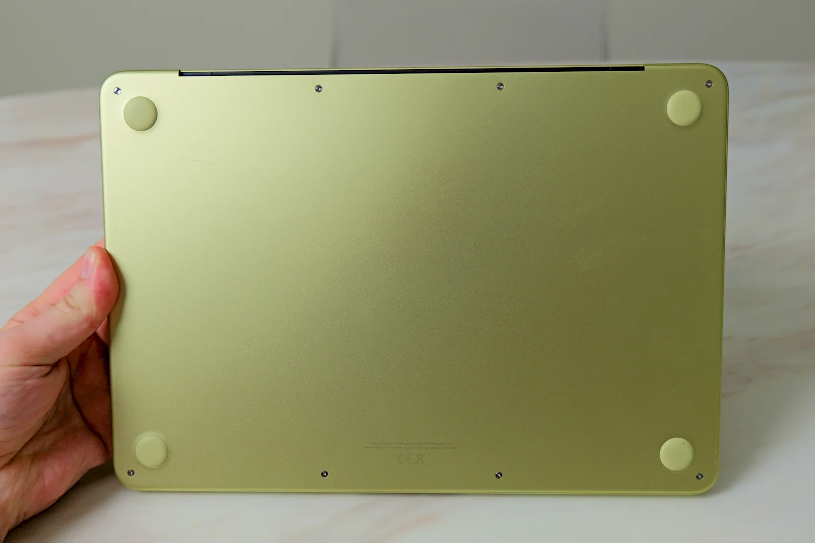 Neo este ușor ca un MacBook Air, are doar 1,23 kilograme, și este și aproximativ la fel de subțire. Neo are 12,7 mm grosime, pe când MacBook Air are 11,3 mm, o diferență totuși mică.