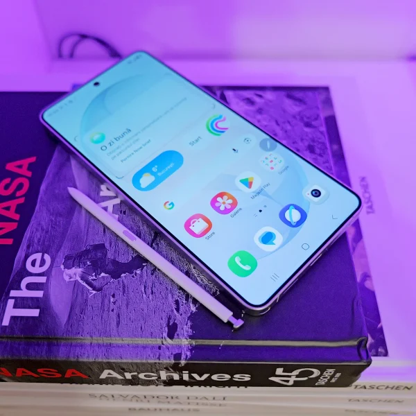 Ecranul rămâne excelent, mare, viu colorat, foarte luminos. Sunetul din difuzoare este puternic. Ai Wi-Fi 7 la bord. Stylusul este în continuare integrat, dar cu problema ciudată pe care v-am spus-o de la hands-on. Stylusul nu mai are capac simetric, așa că dacă-l înfigi invers în telefon, îi iese colțul în afară. Mi se pare un design care nu trebuia acceptat la validarea finală a design-ului, ci trebuia întors la inginerie ca să găsească o altă soluție.
