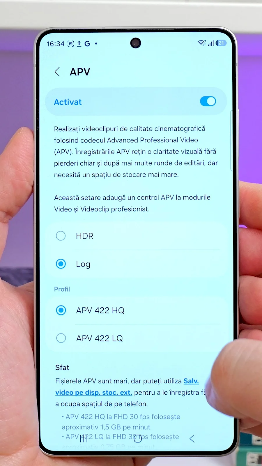 Samsung pare că vrea să concureze iPhone în zona de video profesional prin introducerea acestui codec performant și a filmării cu APV în HDR sau Log 422. Vom vedea dacă reușește asta pe termen lung. Momentan suportul pentru acest codec facut de Samsung este foarte redus, dar trebuie început de undeva.