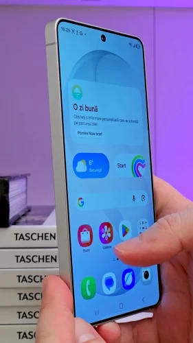 Oricum, construcția este de foarte bună calitate. Telefonul folosește o ramă din aliaj de aluminiu mai rezistent decât în trecut. A dispărut titanul din ramă, după doar două generații, dar nu ai de ce să-i simți lipsa. Nu-i ca și cum a revoluționat rezistența telefoanelor, iar într-un an în care prețul memoriei RAM s-a dus mult de tot în sus, Samsung probabil a trebuit să facă niște reduceri de costuri și mai bine să elimine titanul decât stylusul S-Pen sau altceva mult mai util. Sticla de pe față este Gorilla Glass Armor 2, iar pe spate Gorilla Glass Victus 2, o soluție foarte bună.