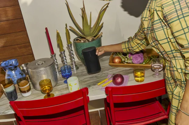 Play este o boxă portabilă, cu autonomie de 24 de ore, rating IP67 și ceva rezistență la șocuri. Are Wi-Fi și Bluetooth, ba chiar se încarcă pe o bază wireless.