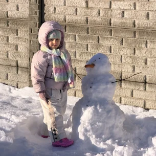 De marea ninsoare am dus-o din nou cu sania la grădiniță. A fost chiar amuzant. Am fost primii care am ieșit din bloc în zăpadă de 40-50 cm, iar pe străzi a fost o aventură mare. Am fost amândoi încântați de experiență. Apoi a făcut și un om mare de zăpadă, ceea ce de mult dorea.
