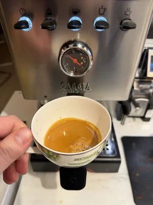 În plus, cel mai mult am apreciat că este o mașină foarte silențioasă. Pompa are un bâzâit plăcut, atât în încălzire cât și în extracție, dar nivelul total de zgomot cred că este de 3 ori mai mic decât la vechiul Lelit. Sunt chiar mulțumit de ce am făcut. Trebuie însă să o las mai moale cu cafeaua, că uzual beau 3-4 shoturi de espresso pe zi și aș bea și mai multe, că-mi place gustul, dar dacă nu mănânc ceva sau nu beau și multă apă, simt că mă agită un pic.