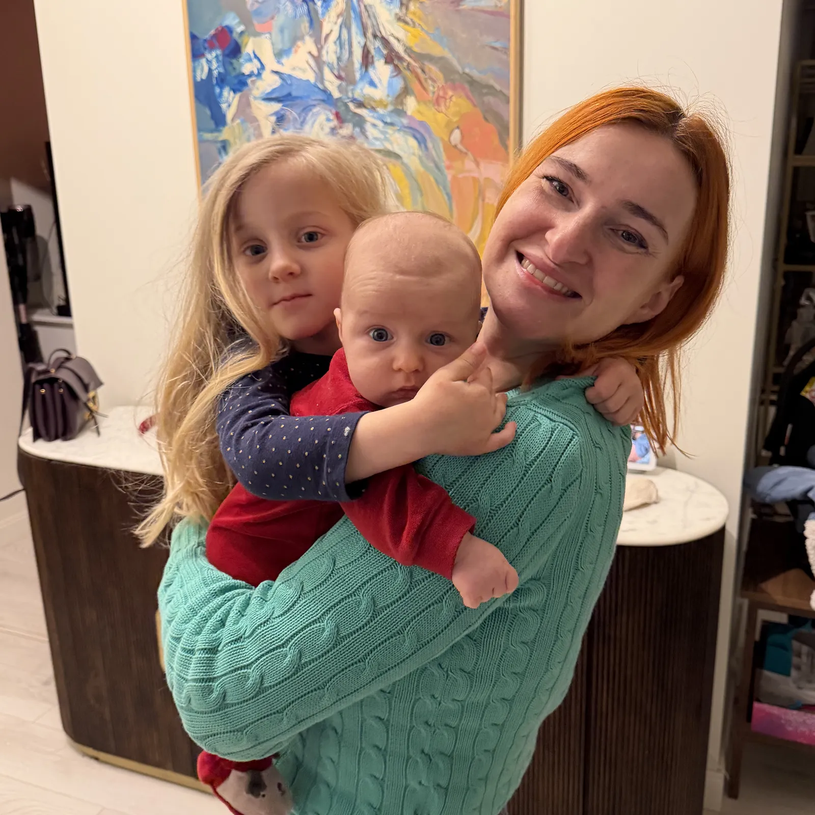 Ea rămâne în continuare foarte atașată de fratele ei mic. Vrea să-l țină în brațe, îl îmbrățișează des etc. Probabil vor veni și momente de certă imediat ce mai crește Alex și începe să-i controbăie prin sertare și să-i strice jucării, dar până atunci totul este bine.