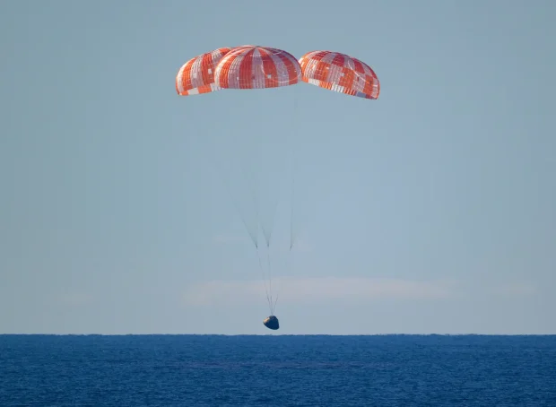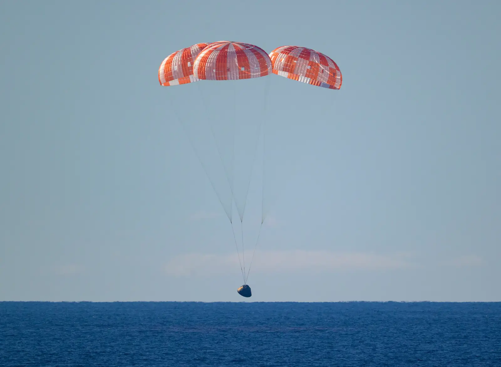 Imagini de la amerizarea capsulei Orion. A fost și live pe YouTube, cu tot cu etapa de deschidere a parașutelor, apoi a durat o oră și 30 de minute să-i scoată din capsulă, că au multe verificări de securitate de făcut și tot felul de accesorii de montat înainte de a deschide trapa. / NASA