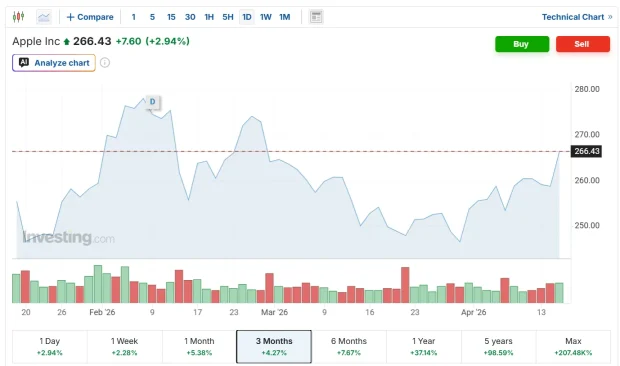 Și Apple, la 266 USD, este aproape de recordul ath de 288 USD.