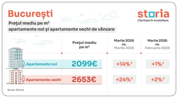 În București, prețurile au crescut cu 1-2% față de luna februarie 2026.