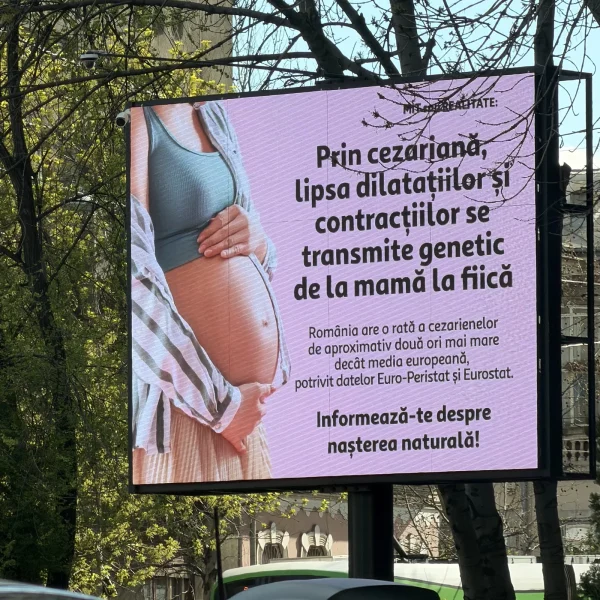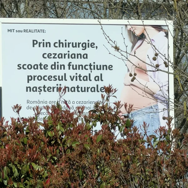 Asta face parte dintr-o campanie anti-cezariană pe care am văzut-o prin tot orașul, iată alt panou: