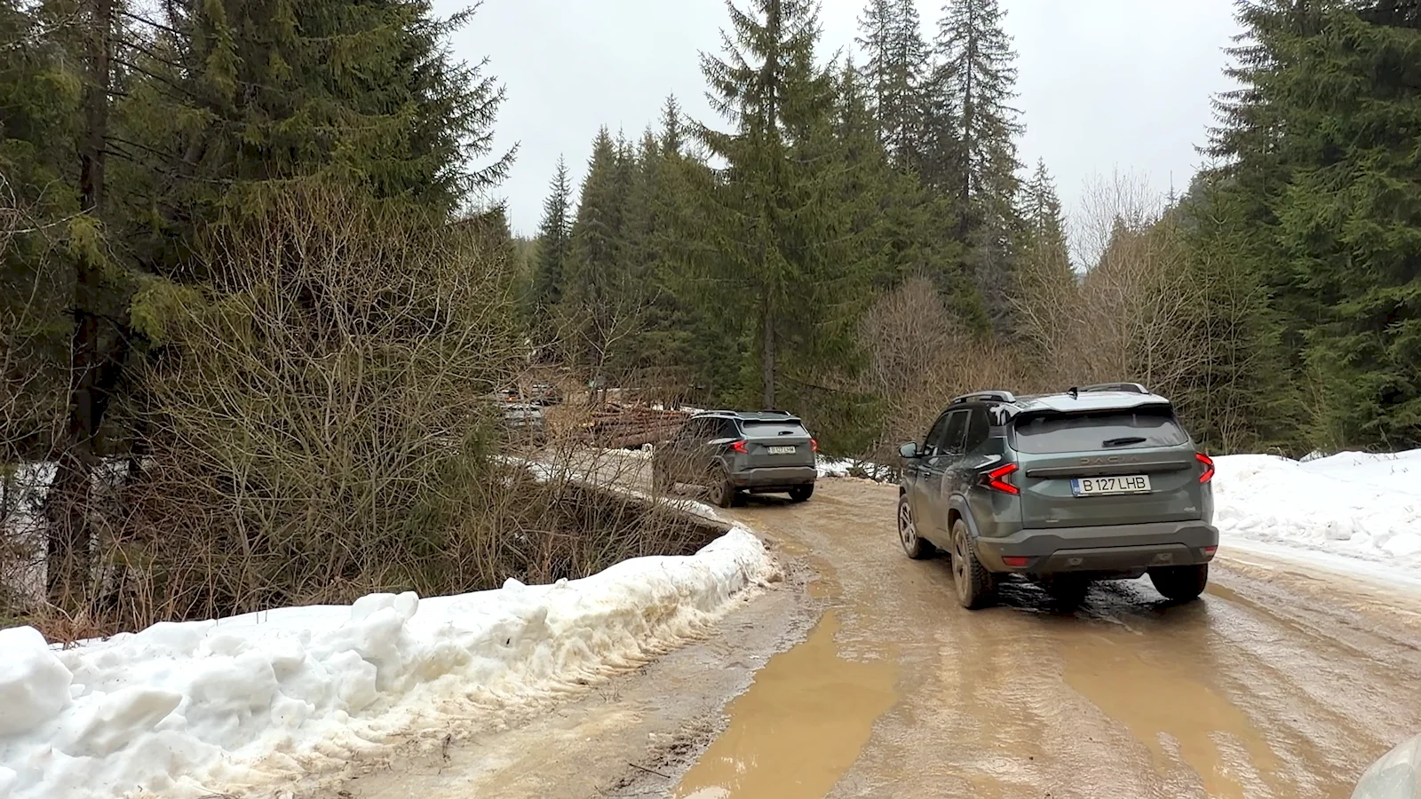 Am dus mașina pe niște drumuri forestiere, neasfaltate, uneori încă acoperite cu gheață la acea altitudine, și ținuta de drum a fost excelentă. Atât Duster, cât și Bigster nu au derapat niciodată, ci au fost mereu stabile și au avut mereu tracțiune sigură și performantă.