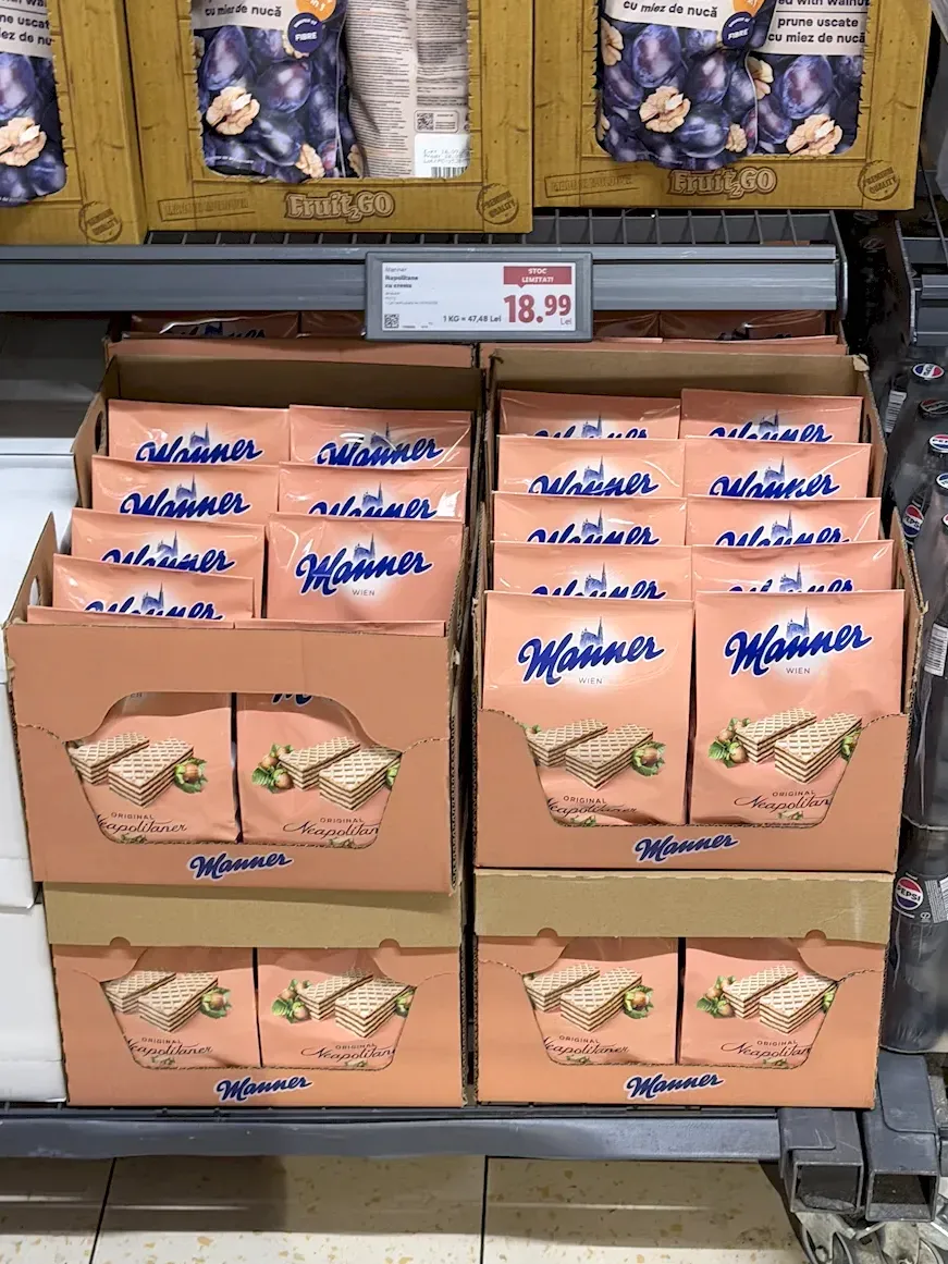 În zona de mâncare s-a ocupat Matilda de cumpărături. Eu vă recomand cârnații aceștia salsiccia, de mâncat cu o clasică fasole. Se pot găti în diverse moduri, inclusiv metoda italienească de a-i găti lent în apă până aceasta se evaporă și apoi prind un pic de crustă de la tigaie, dar durează enorm așa. Am mai văzut și pungi de napolitane Manner, care de obicei costau cu 6 lei mai mult în alte magazine.