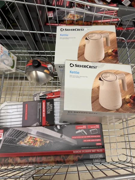 Eu am fost acolo pentru două căni fierbătoare de apă. Noi avem de mult una și este foarte utilă când facem ceai. Mai fierbem apă acolo, de exemplu, și ca starter pentru fiert cartofi sau cremwurști; turnăm apoi apa fiartă într-o oală și aragazul o preia practic din mers, scurtând foarte mult timpul de pregătire.