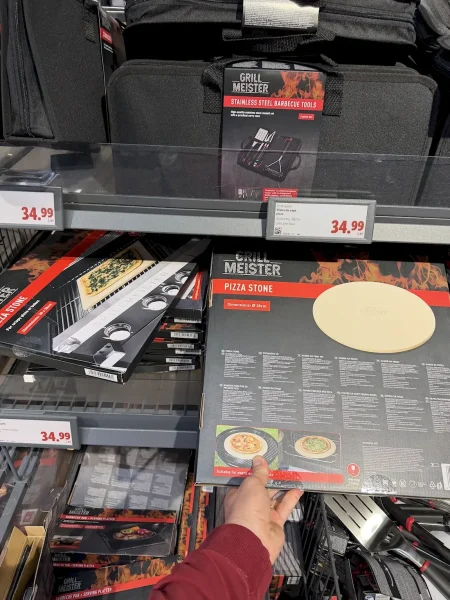 Au pietre de pizza la Lidl. Nu știu dacă folosiți, dar sunt utile dacă vreți să faceți pizza la nivel semi-pro. O astfel de piatră se încălzește bine de tot în cuptor, apoi puneți pizza pe ea (vă trebuie și o lopată de pizza) astfel încât aluatul să se gătească rapid și cu un șoc termic mare, care-l face mai pufos, în doar câteva minute. Eu am una primită de zestre de la nashu_mare.