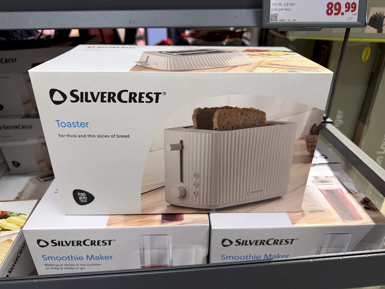 Prăjitorul de pâine costa 90 de lei. Eu am dat 120 de lei acum vreun an pe unul de aceeași dimensiune, dar cu aspect mult mai banal.