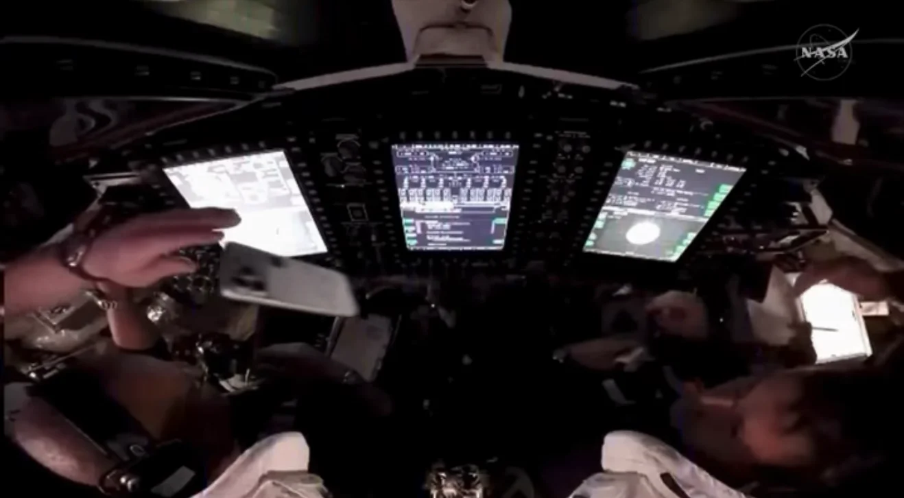 După EXIF-ul altor fotografii, au și Nikon D50 la bord, cu obiective cu zoom, și i-am auzit vorbind pe radio despre un Nikon Z9, dar imaginile din interiorul capsulei și aceste HDR-uri în care se vede interiorul și exteriorul sunt făcute cu un telefon.