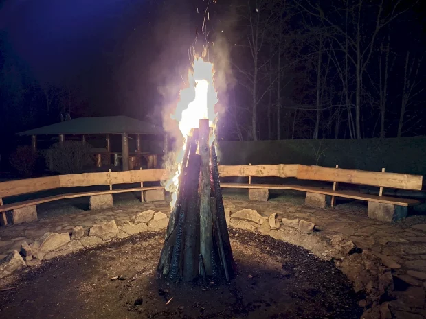 Pe timp de noapte, fotografiile au adus și surprize. Aceasta este o fotografie cu un foc de tabără și a ieșit total aiurea, telefonul a încercat să interpoleze două cadre și nu s-a prins ca n-ar trebui să facă asta în cazul unei mari flăcări.