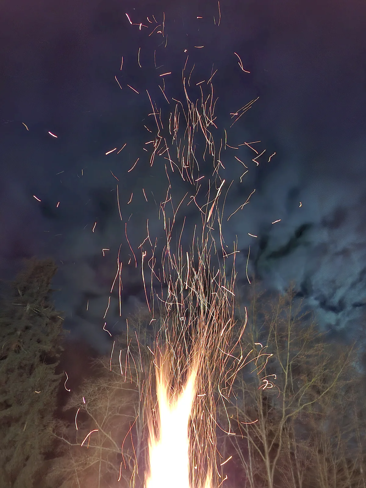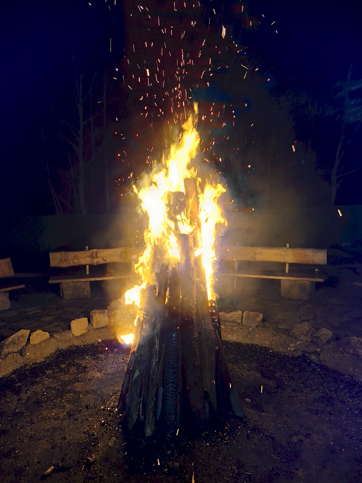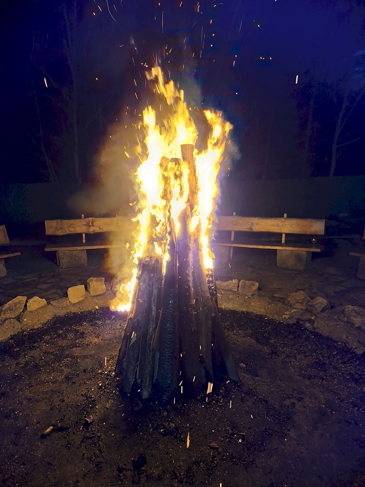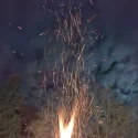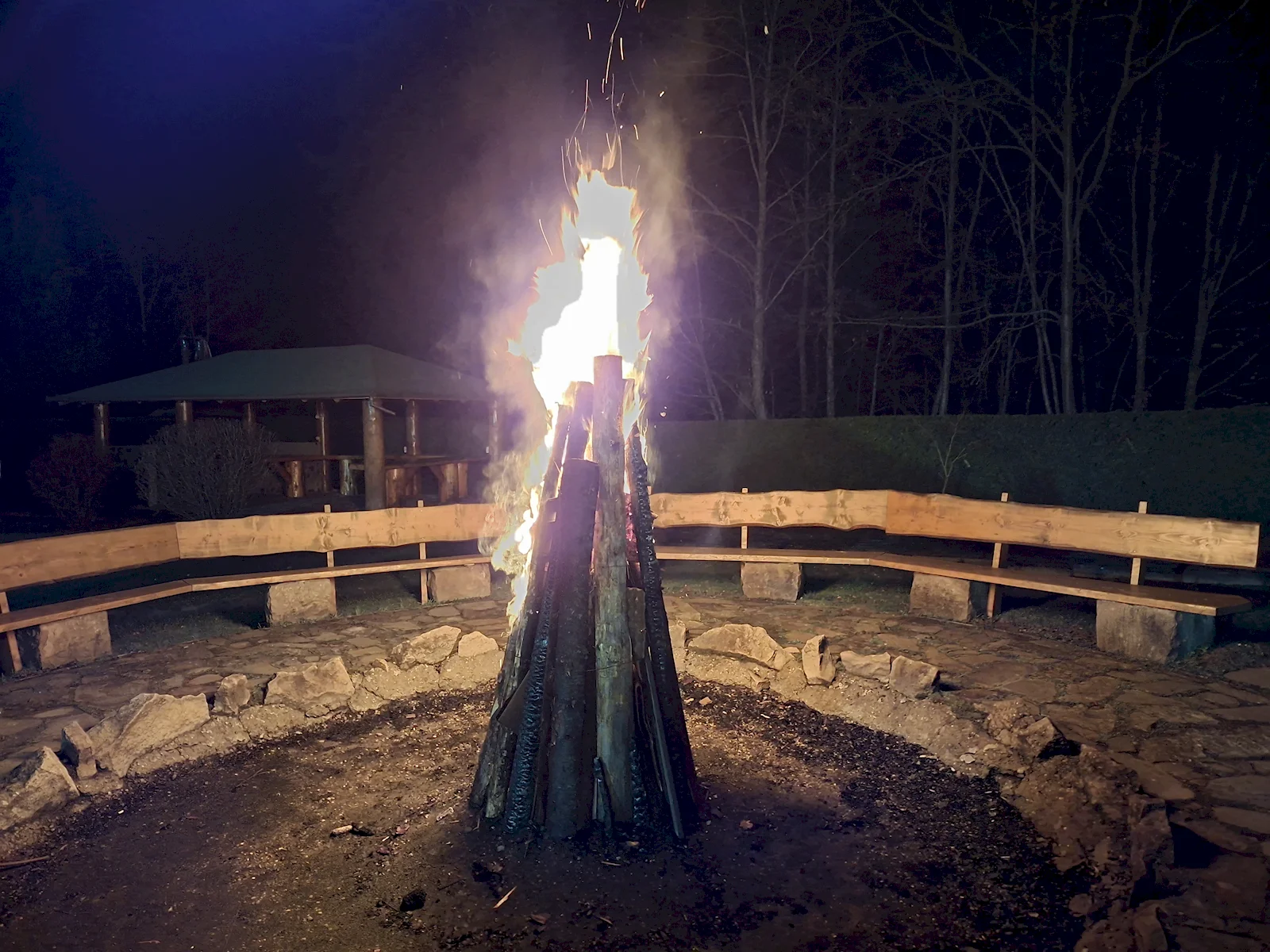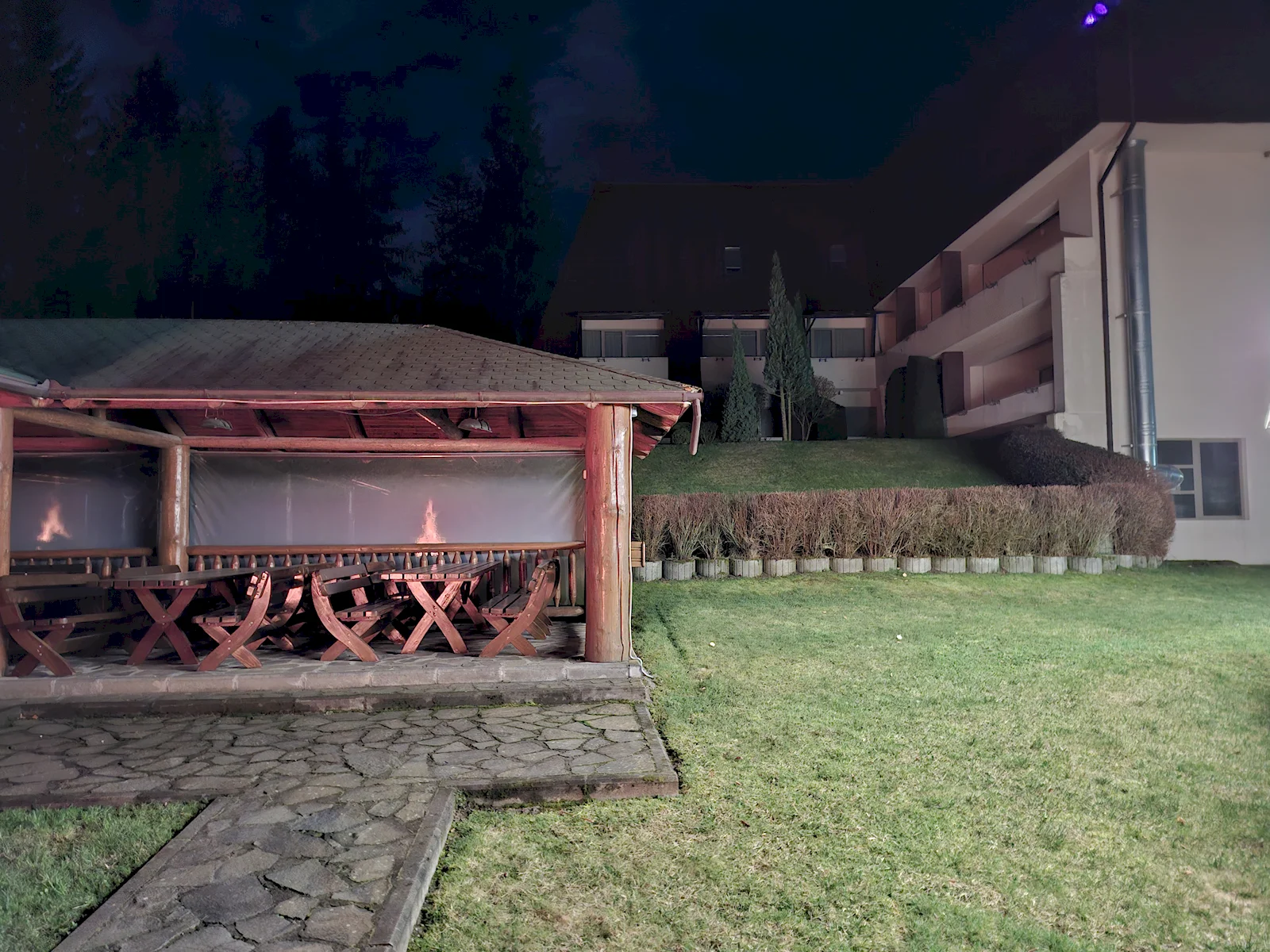 Pe timp de noapte, fotografiile au adus și surprize. Aceasta este o fotografie cu un foc de tabără și a ieșit total aiurea, telefonul a încercat să interpoleze două cadre și nu s-a prins ca n-ar trebui să facă asta în cazul unei mari flăcări.