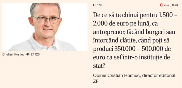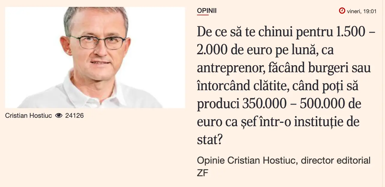 Titlul zilei. Voi de ce nu sunteți șefi de instituții de stat, în loc de antreprenori care întorc clătite?